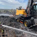 Tres dotaciones del SEPEIS sofocan los focos del incendio de plásticos en La Bañeza