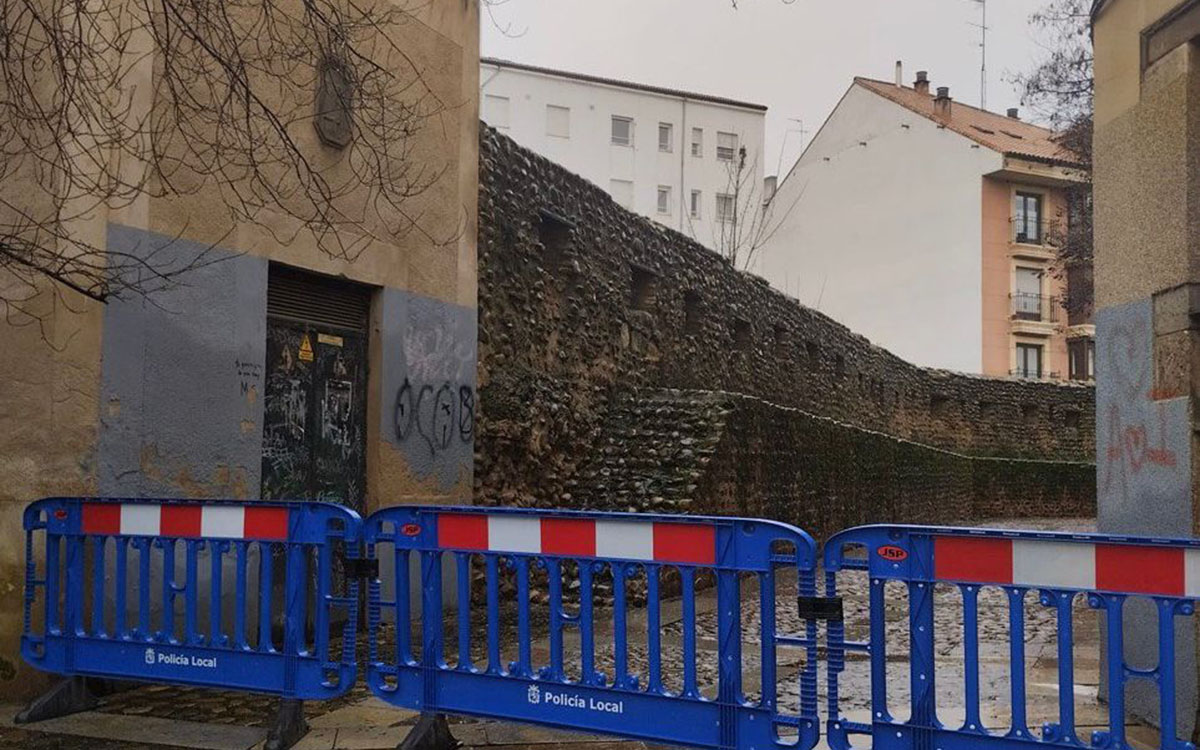 La Policía Local ha procedido al corte de la calle Las Cercas en León desde la Plaza de San Francisco hasta la calle Puerta Moneda debido al derrumbe de una pared de un edificio y ante la alerta meteorológica por viento, lluvias y nevadas.