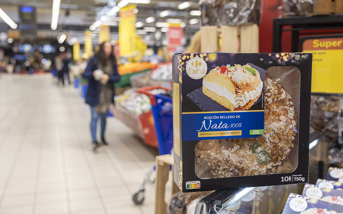 Carrefour señala que su roscón se elabora siguiendo la receta tradicional y con una selección de ingredientes vinculada a su apuesta por la calidad. Entre los elementos destacados figuran la masa madre y el relleno 100% nata, además de mantequilla y la ausencia de determinados aceites.