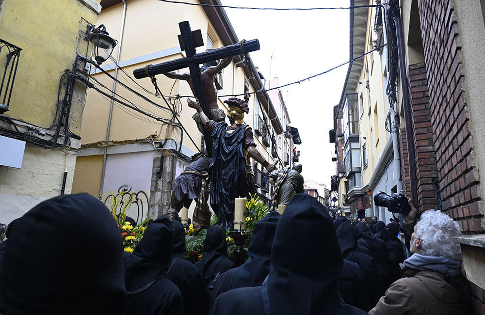 Con la lluvia dejando una tregua tras una jornada para olvidar en la Semana Santa Leonesa teniendo que haberse cancelado todas las procesiones de la tarde de Jueves Santo, la Procesión de los Pasos salía a las calles como cada Viernes Santo.