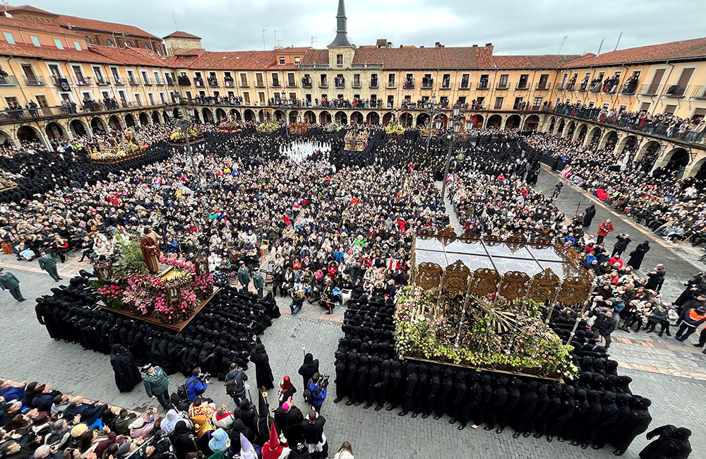 Con todos los pasos rodeando la plaza, el acto se celebró con gran expectación, un emotivo acto que como cada año deja una de las imágenes más admiradas de la Semana Santa de León.