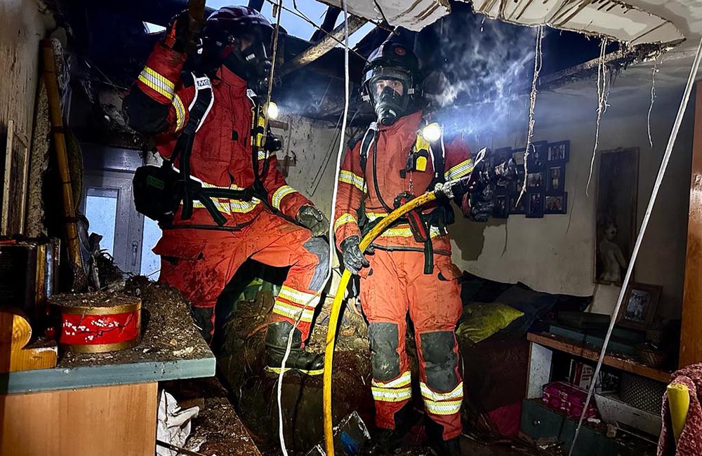 A la llegada del servicio de bomberos, la casa se encontraba calcinada en parte, cabe recordar que desde el Parque de Bomberos de León existe una distancia aproximada de 40 minutos a dicha localidad.