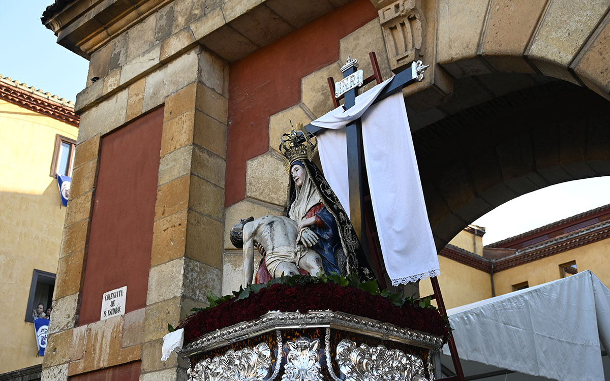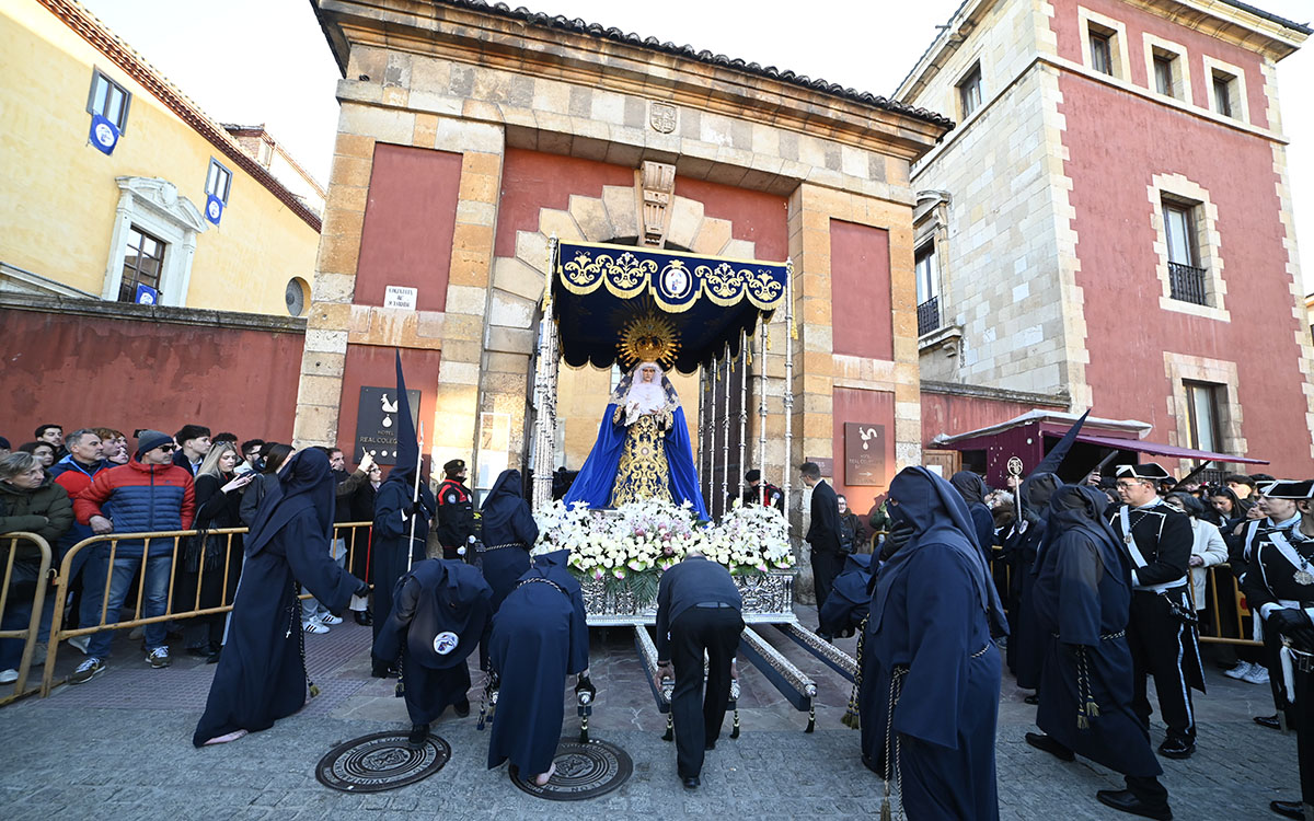 El cortejo salió del patio de San Isidoro a las 18:00 horas y avanzó por puntos emblemáticos como Santo Martino, Sacramento, la calle Ancha, San Marcelo, la Rúa, Don Gutierre, San Martín, la Plaza Mayor y la Plaza de Regla, antes de regresar al entorno isidoriano. En ese recorrido volvieron a sobresalir algunos de sus instantes más reconocibles, como la petalada a la Virgen de la Esperanza, el acto ante el Cristo de la Victoria y la ofrenda floral al Cristo de Fuera de San Martín.