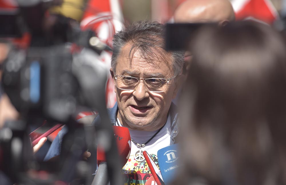 Al finalizar el recorrido, a los pies de Botines, los representantes sindicales procedieron a la lectura del manifiesto ante todos los integrantes de la protesta.