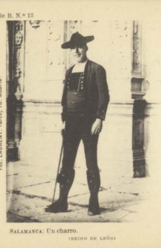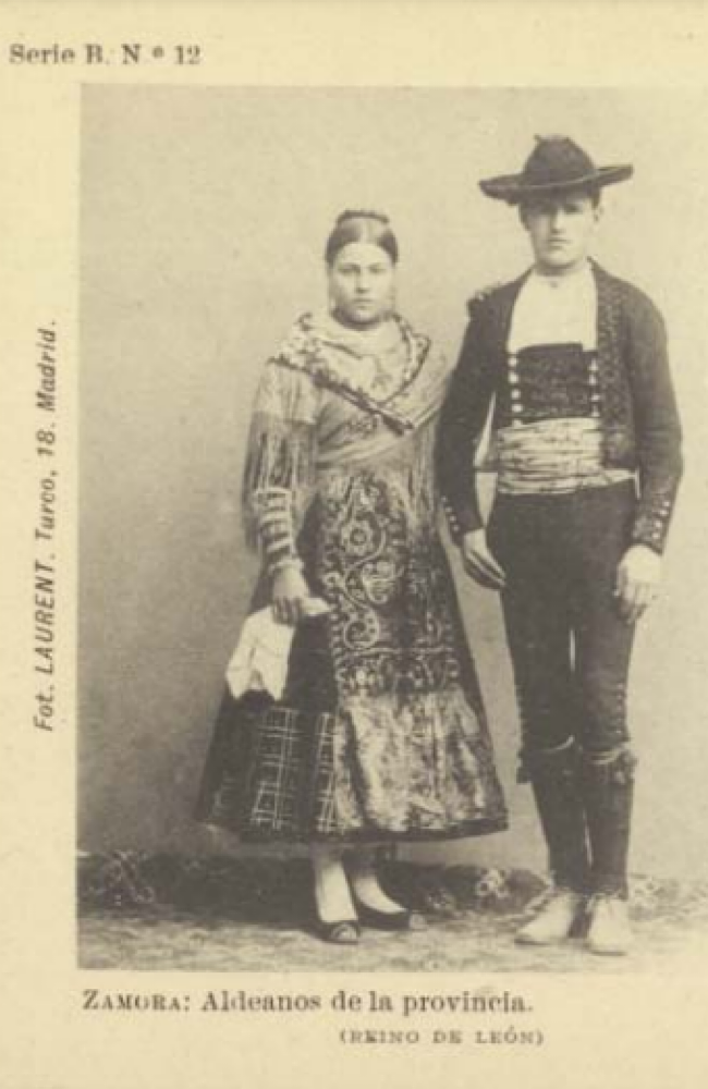 Esas tarjetas postales editadas por Lacoste circularon en Europa durante los primeros años del siglo XX, dando a conocer la composición regional de la España del momento. La Región Leonesa está representada en dicha serie por 12 postales, ocho dedicadas a la provincia de León (las numeradas de la 2 a la 9) y otras 3 a las provincias de Zamora y Salamanca (desde la 12 a la 14). Destaca que en el pie de foto de estas últimas se subraya su pertenencia al Reino de León: “Nº 12 ZAMORA. Aldeanos de la provincia. (REINO DE LEÓN)”; “Nº 13 SALAMANCA. Un charro. (REINO DE LEÓN)”; “Nº 14 SALAMANCA. Charros y Gitanos en el mercado. (REINO DE LEÓN)”. Las numeradas de la 15 a la 20 están dedicadas a Castilla la Vieja, a los tipos de Segovia y Ávila. Las tarjetas se encuentran a la venta en la casa Laurent de Madrid, estancos, librerías y tiendas de objetos de escritorio.