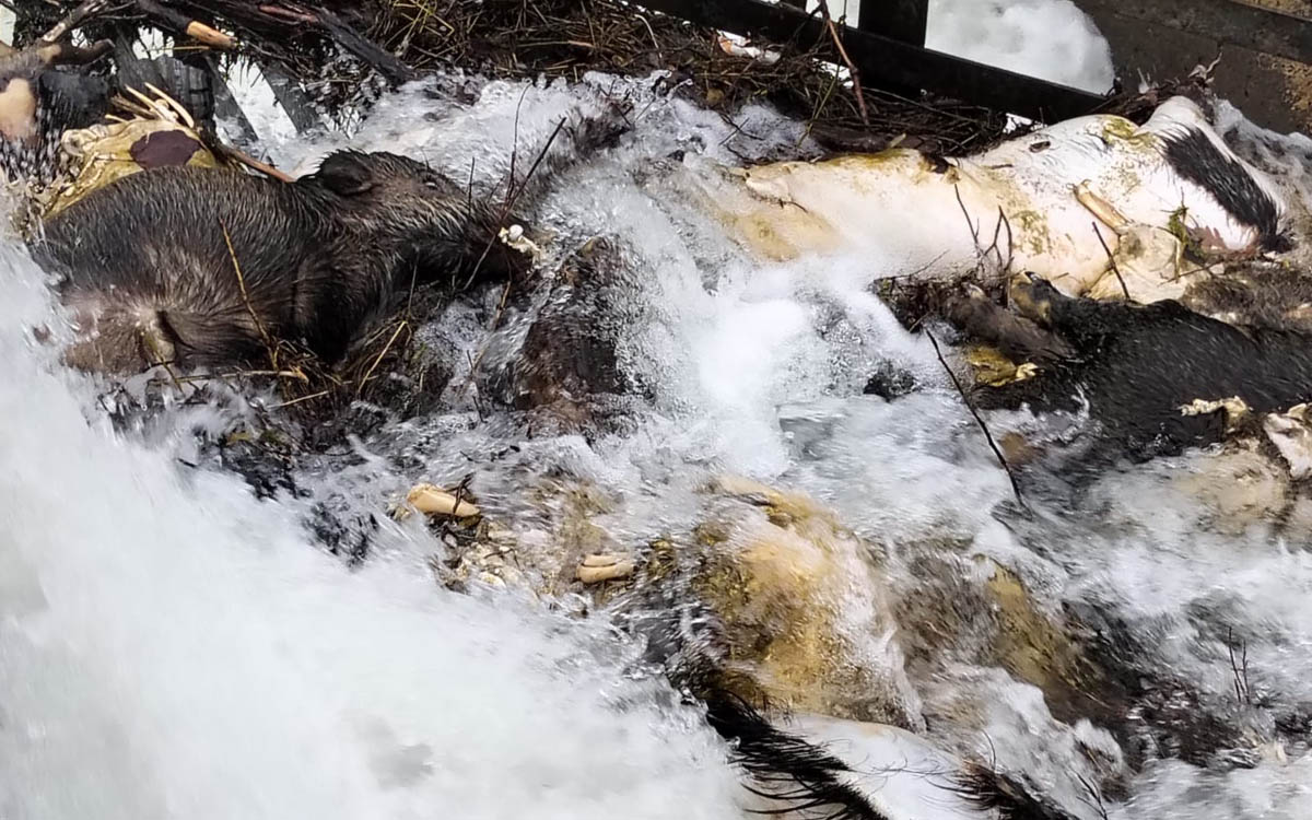 Según la información difundida por ambas organizaciones, el hallazgo no se limita a animales fallecidos recientemente. En la zona también se habrían encontrado restos óseos, un extremo que, a su juicio, indicaría que este punto del canal lleva tiempo funcionando como una trampa mortal para la fauna silvestre. Las imágenes incluidas en la nota, en las páginas 2, 3 y 4, muestran una acumulación de cuerpos y huesos atrapados en el salto del canal.