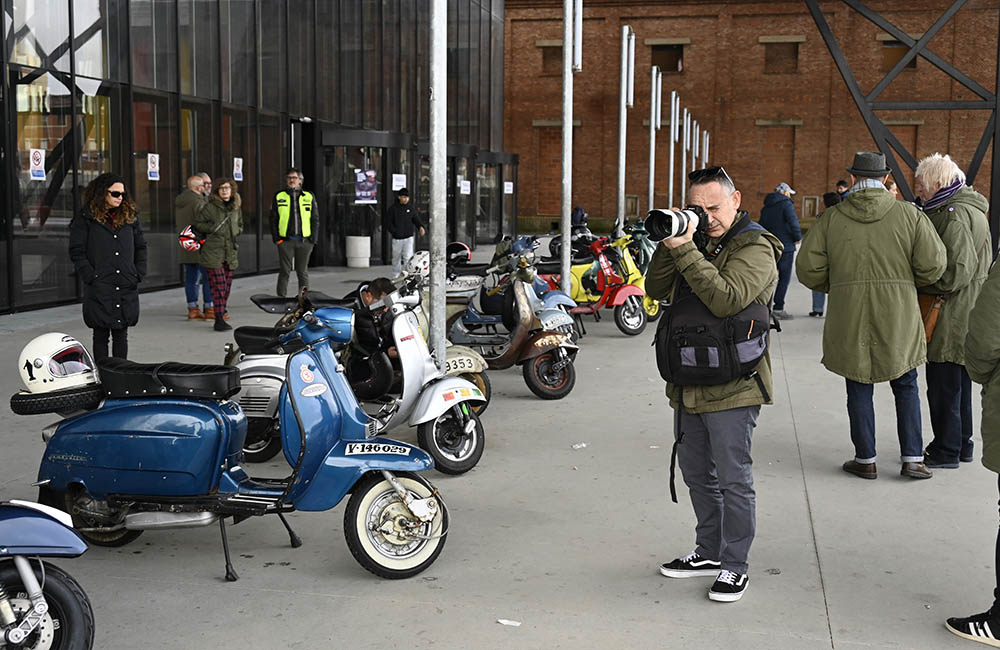 Con quedada a los pies de Palacio de Exposiciones, lugar donde reside gran parte del programa del Purple, decenas de amantes de las motos y la música se citaron para presumir de estas pequeñas joyas de dos ruedas.