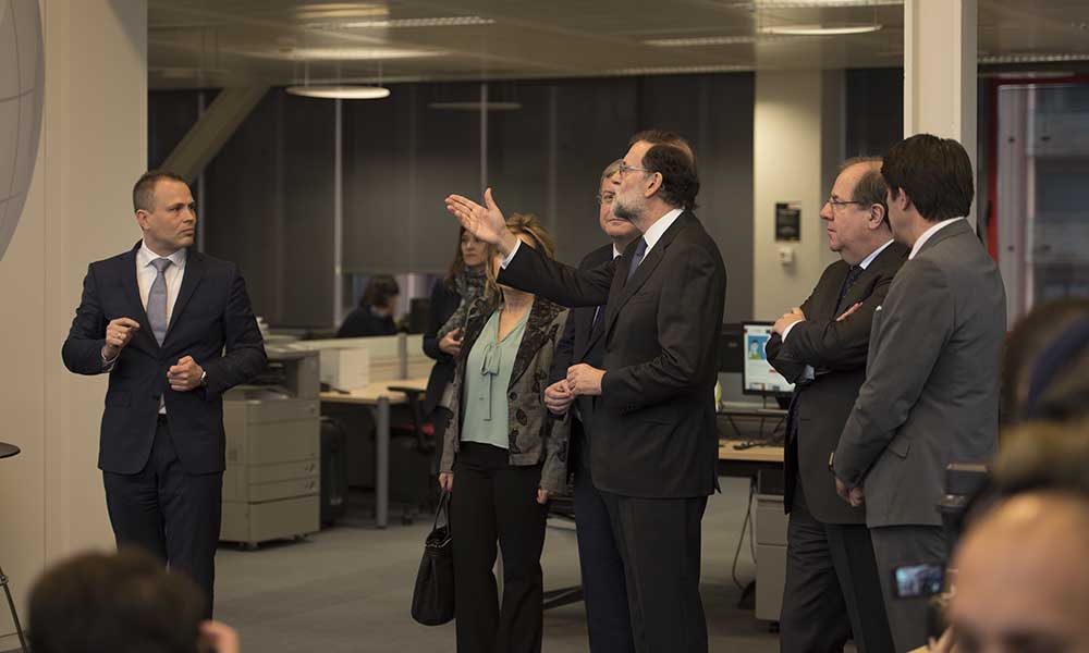 En torno a las 12:00 horas Mariano Rajoy llegaba al Instituto Nacional de Ciberseguridad, donde fue recibido por el Director del INCIBE, Alberto Hernández junto al Consejero de Fomento y Medio Ambiente, Juan Carlos Suárez Quiñones.