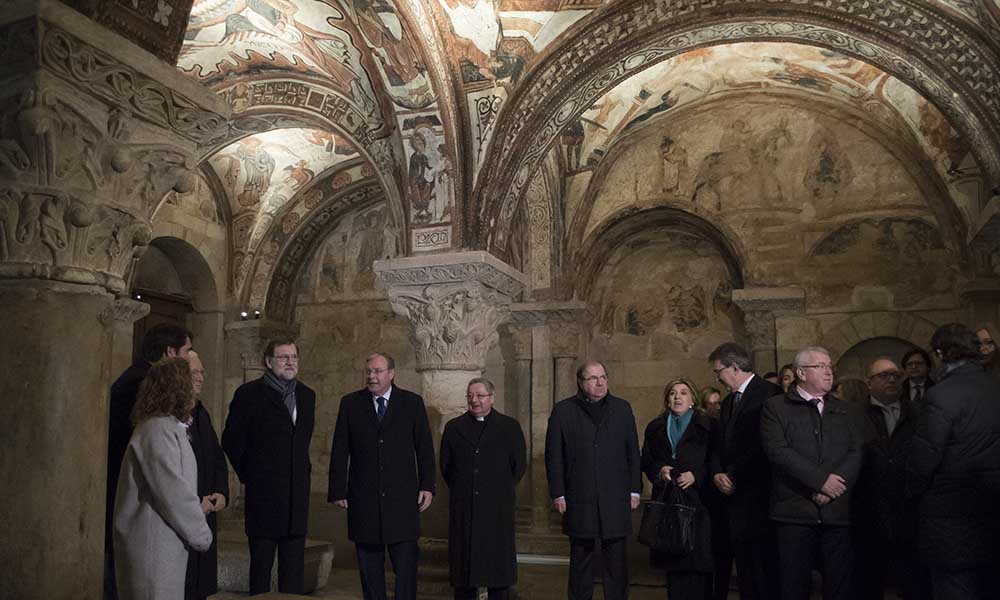 Posteriormente el presidente del Gobierno, ha continuado su visita leonesa, en este caso accediendo a la Colegiata de San Isidoro, donde acompañado por el alcalde de León, Antonio Silván, el presidente de la Diputación de León, Juan Martínez Majo así como gran parte de la comitiva municipal, ha conocido de primera mano el Panteón de los Reyes de León y pudo contemplar el conocido Cáliz de Doña Hurraca.