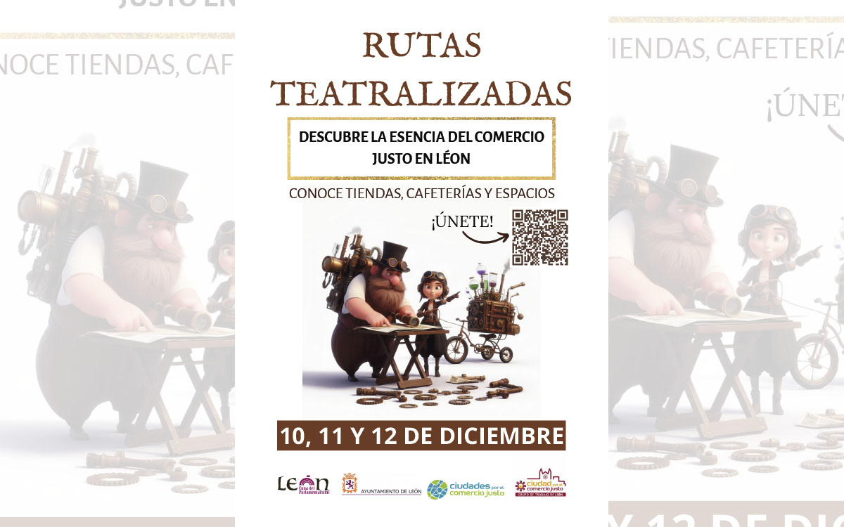 La Concejalía de Comercio del Ayuntamiento de León ha puesto en marcha unas rutas teatralizadas gratuitas que se celebrarán los días 10, 11 y 12 de diciembre, en horario de mañana y de tarde, con el objetivo de promocionar el comercio justo y de proximidad y animar a leoneses y turistas a realizar sus compras navideñas en el comercio local.