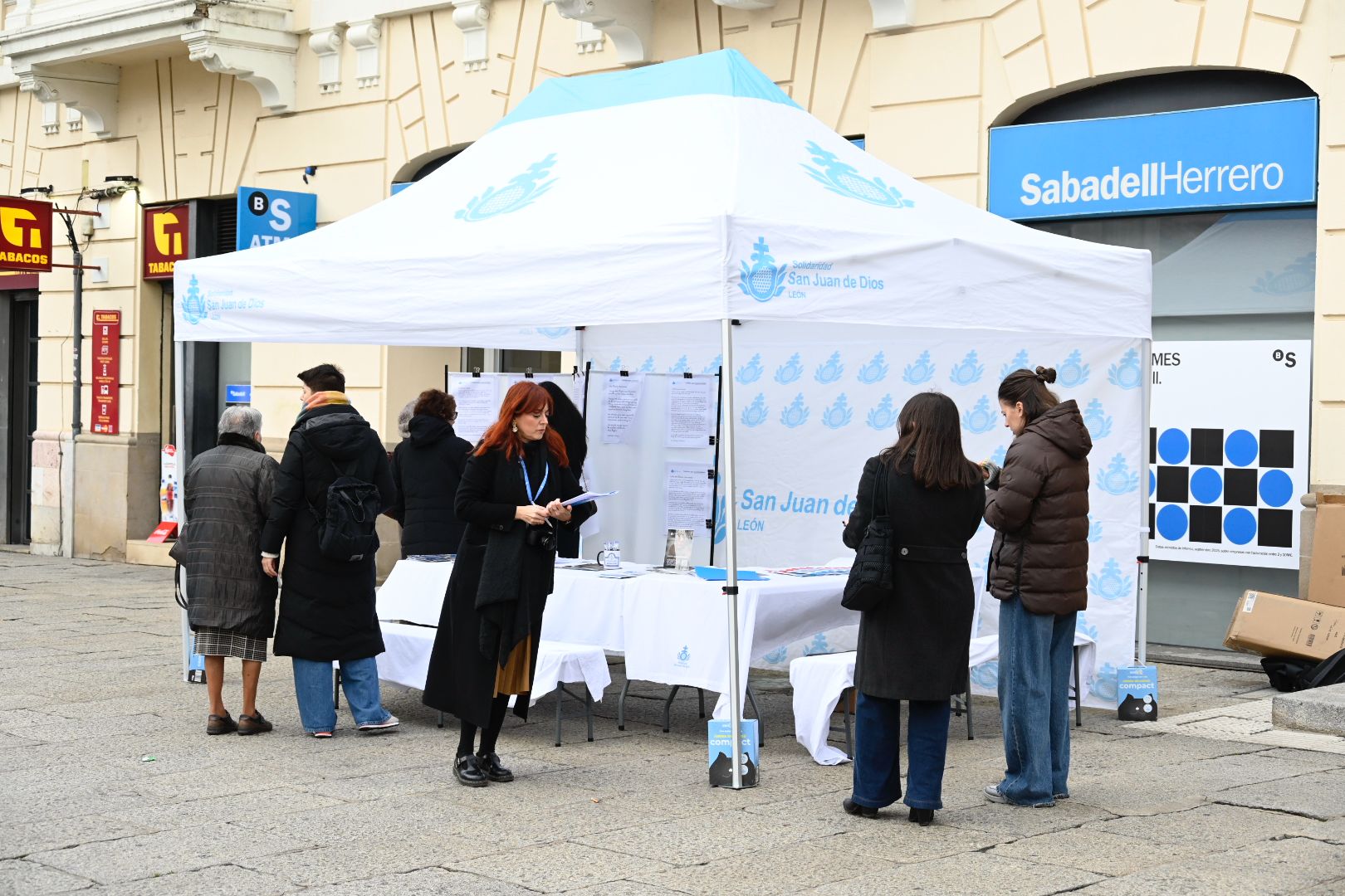 San Juan de Dios de León ha vuelto a tomar el pulso de la ciudad para visibilizar una realidad que suele quedar en silencio: la soledad no deseada de las personas mayores ingresadas en el hospital durante la Navidad. Este jueves, un grupo de voluntariado de acompañamiento hospitalario se ha dado cita en el centro, frente al Museo Casa Botines de Gaudí, con un objetivo directo: convertir palabras en compañía.