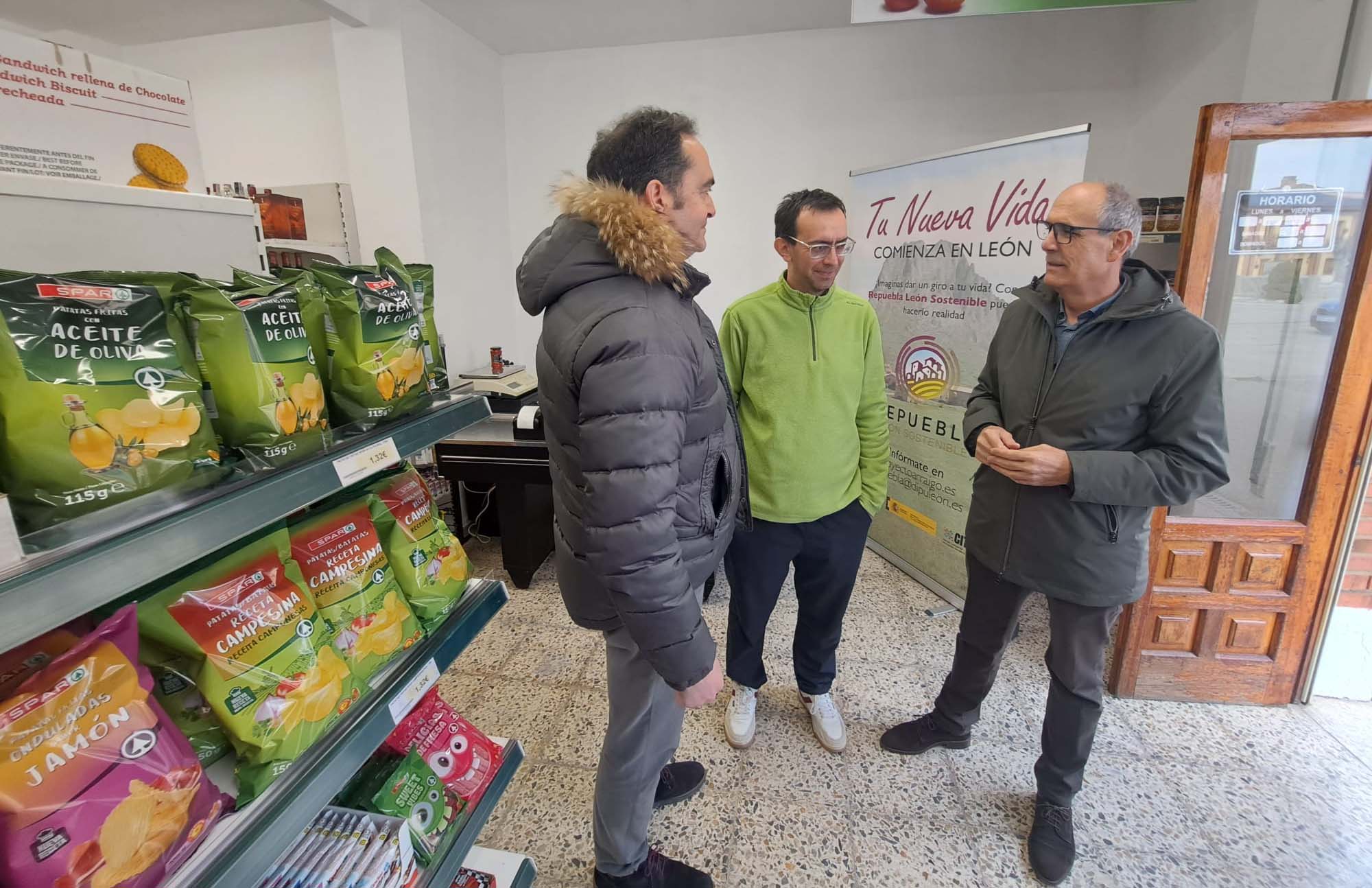 El diputado de Derechos Sociales y Territorio Sostenible de la Diputación de León, Francisco Javier Álvarez, ha visitado este jueves la nueva tienda abierta en el municipio de Fresno de la Vega gracias a una familia que se instaló en la localidad a través del programa Repuebla.